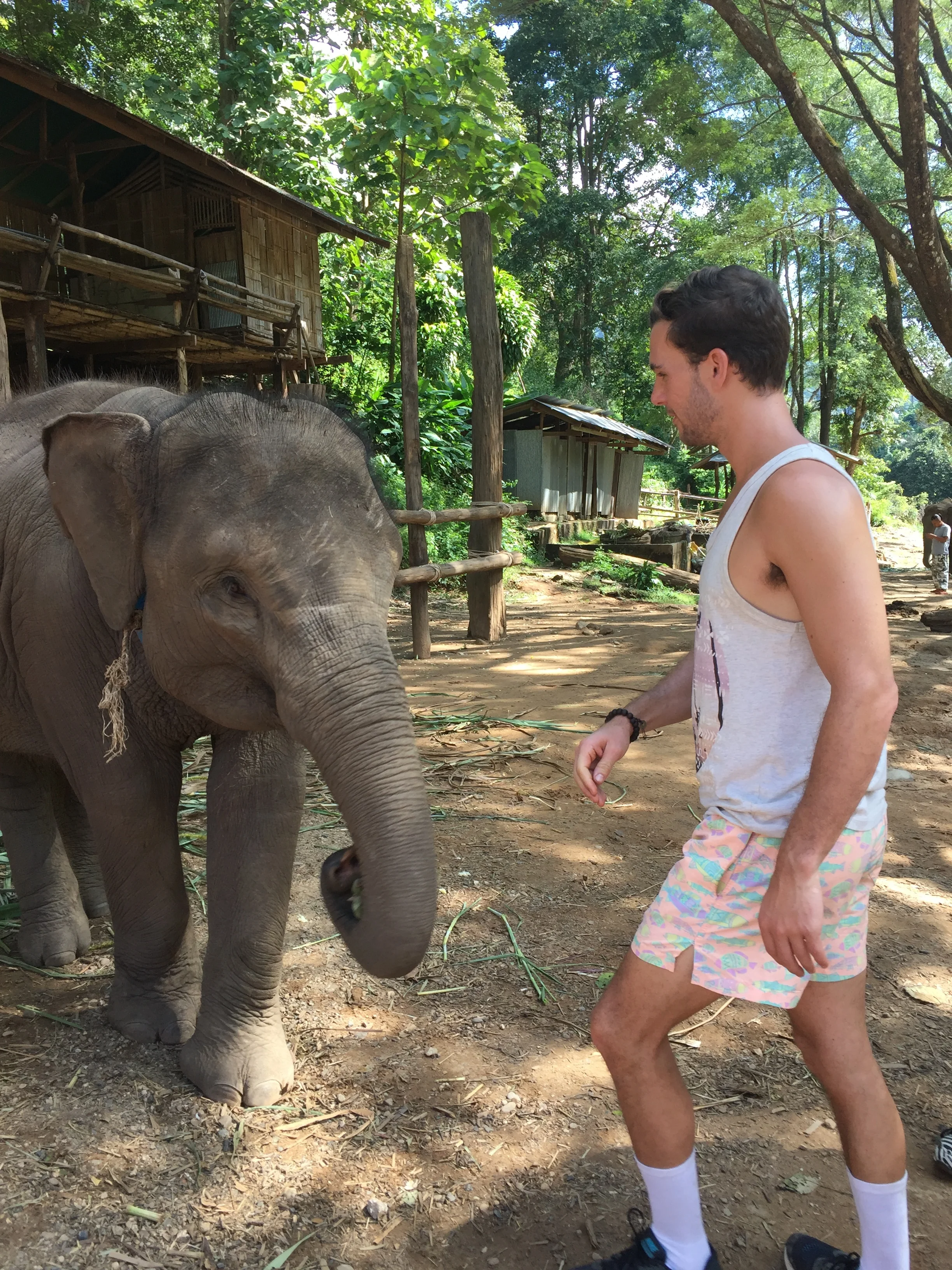 At the sanctuary, we learned about the conditions the local elephants - 5 in all - had been rescued from. We gained their trust by feeding them bananas and sugarcane. If you have never seen an elephant eat a banana, they don't take much time to make conversation while they peel it. They eat that thing whole. We then leveraged that hard-earned intimate trust to ball up tamarind, which acts as a natural diarrhetic, inside of sticky rice, and tricked the elephants into eating the balls. This is supposedly a holistic medicinal solution for elephant disease, but comes across as more of a prank to induce some elephant IBS. To make it up to them, we gave the elephants full spa treatment, washing and exfoliating them in the river next to the sanctuary.
